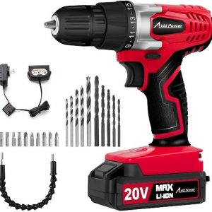 AVID POWER 20V MAX Lithium Ion Cordless Drill, Power Drill Set with 3/8 inches Keyless Chuck, Variable Speed, 16 Position and 22pcs Drill Bits